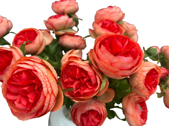 Breng direct een warme en romantische uitstraling in huis met deze decoratieve koraalrode ranonkel! Deze volle kunstbloem met haar vele fijne bloemblaadjes is een prachtige, tijdloze toevoeging aan elk boeket.