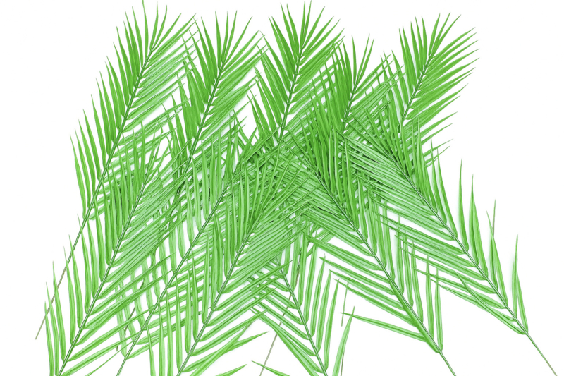 Lengte van het blad gemeten zonder steel 35 cm, lengte gemeten met steel 52 cm.€ 0,59 € 0,39 - Kunstbladeren, kunst palmblad, palmbladeren 36x12 cm